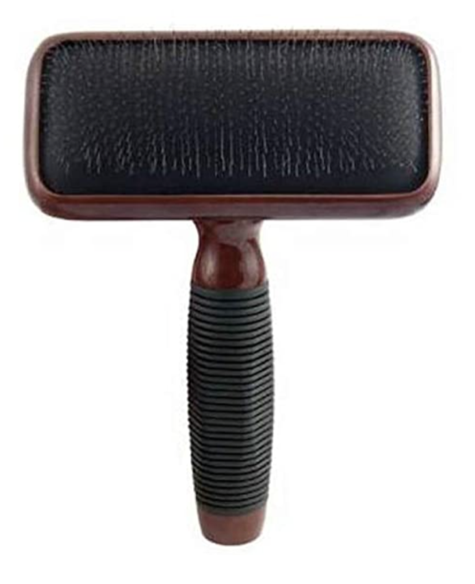 This high-quality brush is perfect for the home groomer or seasoned professional. Featuring finely-polished rounded pins, this brush is designed for undercoat removal and leaves the coat smooth and shiny. Kenchii Slicker Brushes are designed with a luxurious maplewood handle and a rubber non-slip grip to help provide control as you brush. The soft cushioned back pad also helps reduce brush burn for a fantastic finish to any grooming session!